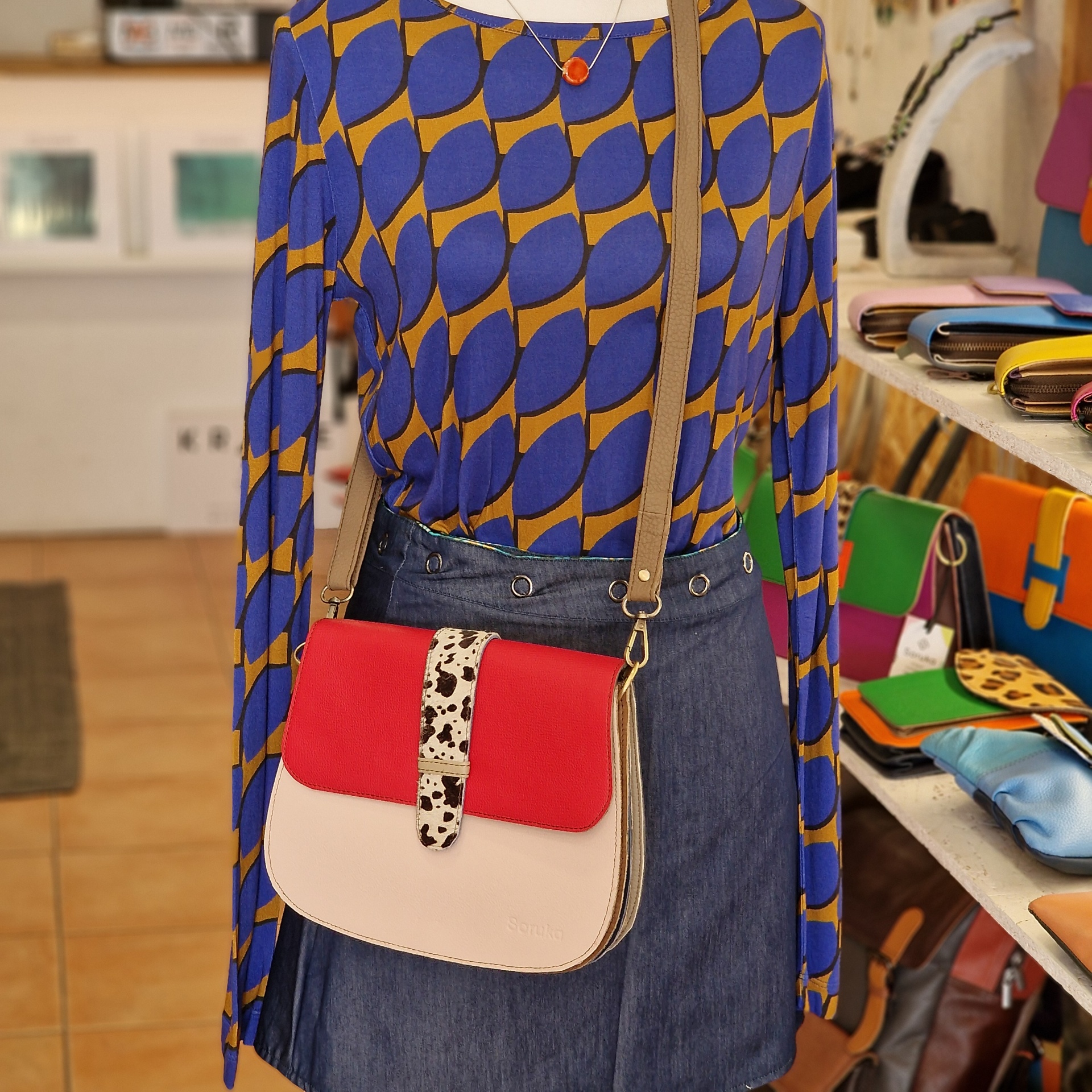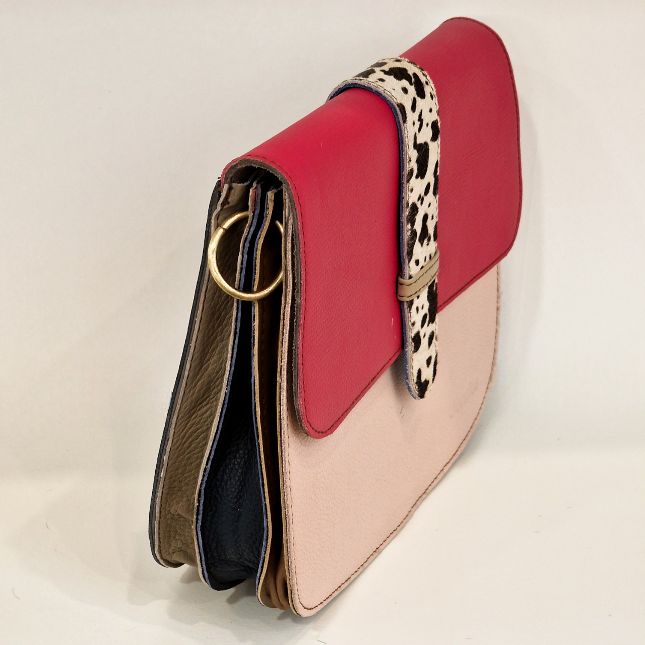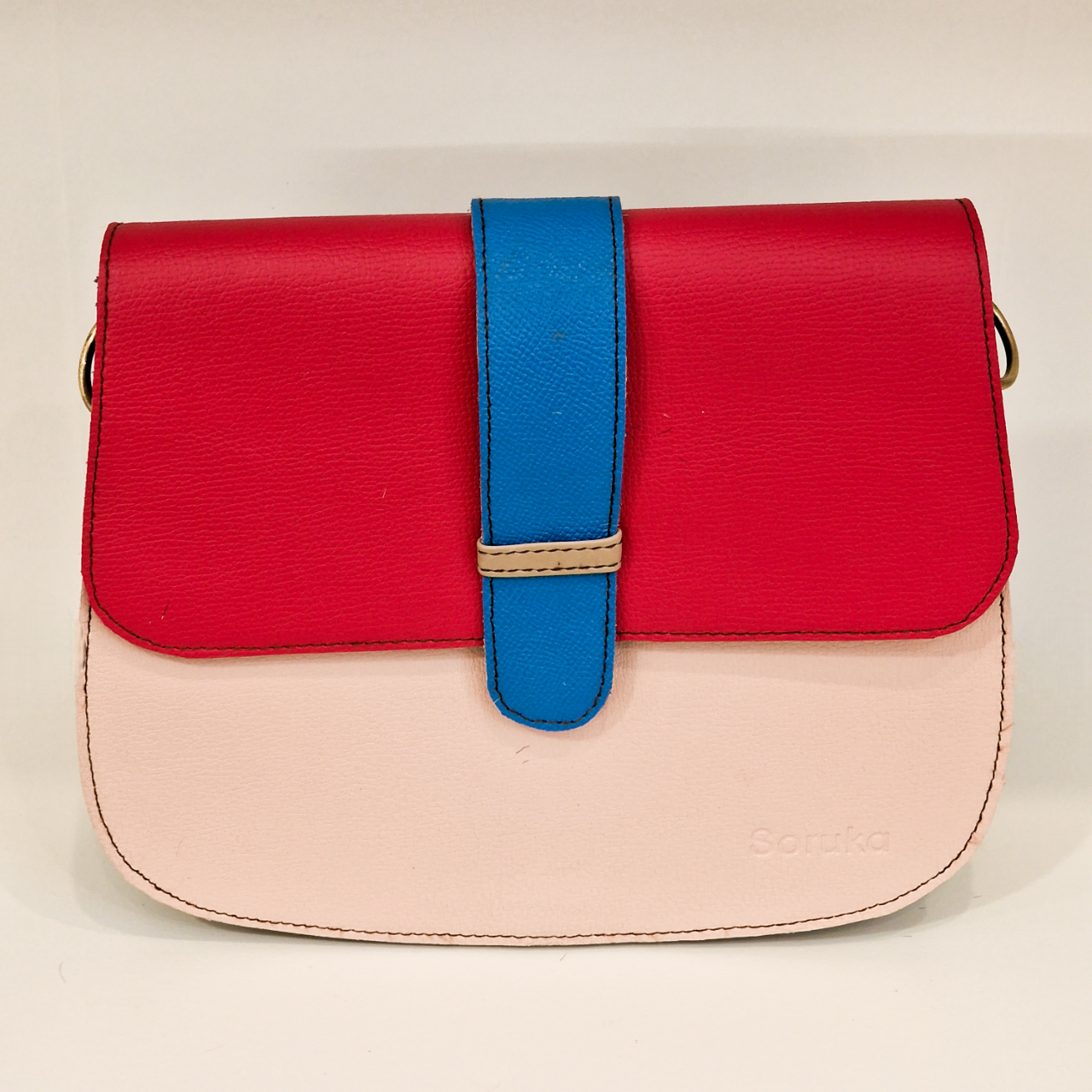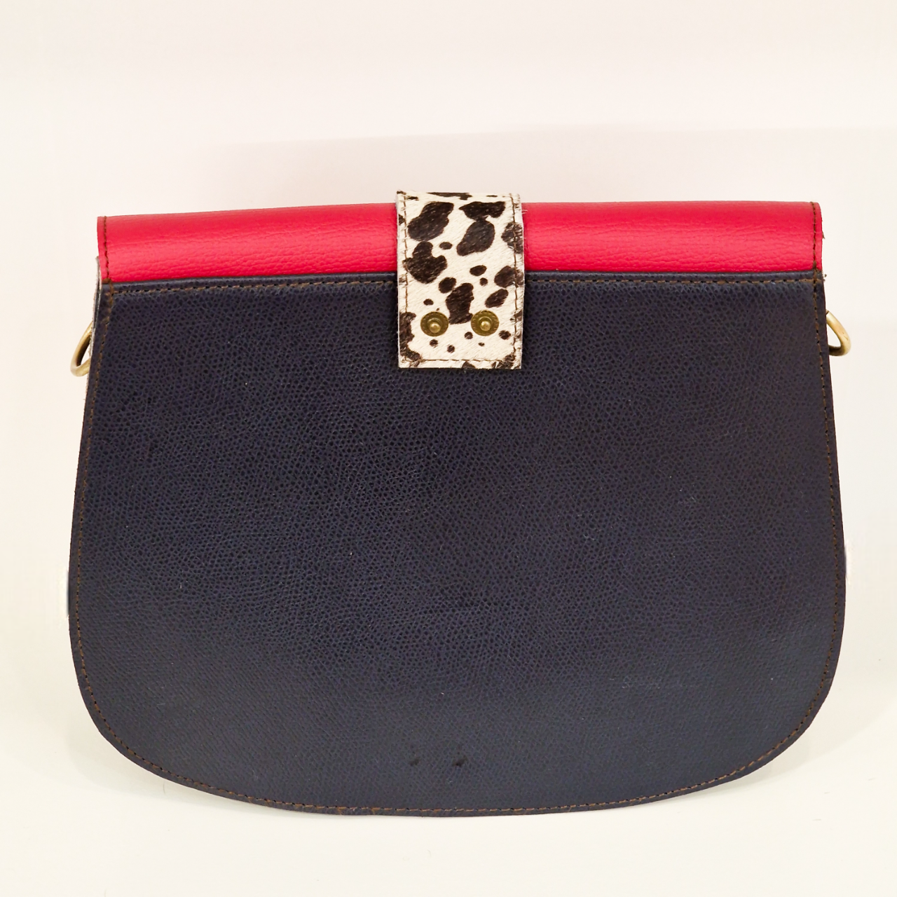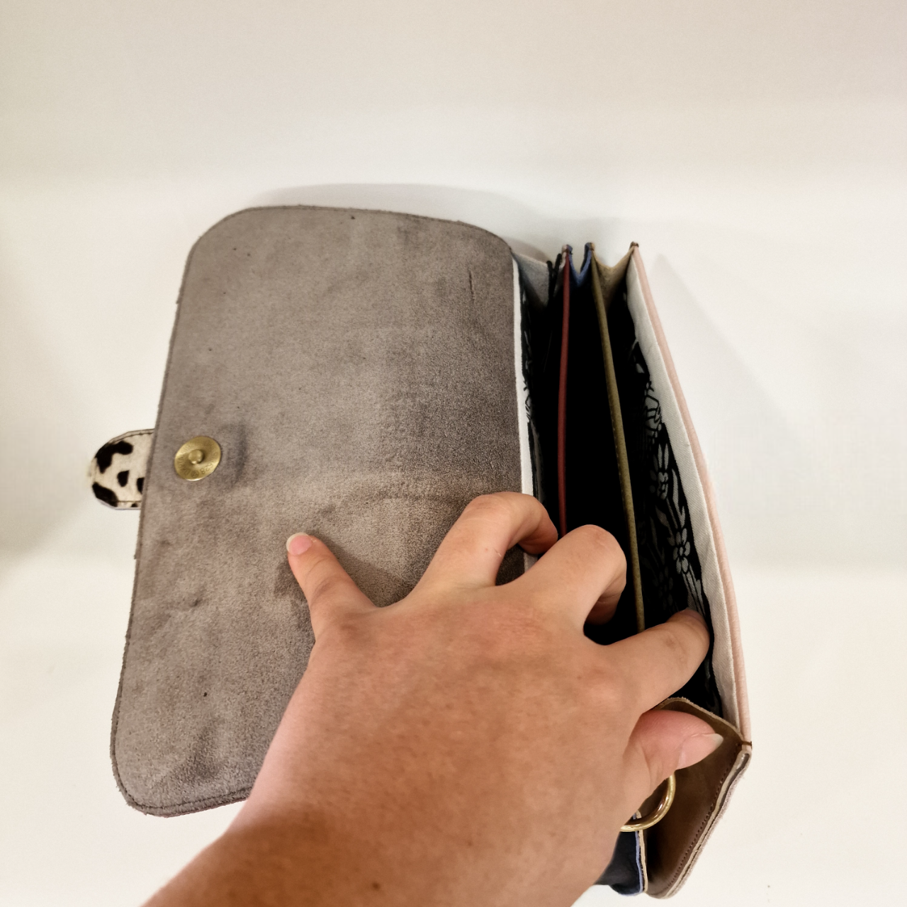 Mala 100% couro reciclado, inclui uma alça de couro ajustável e extensível.