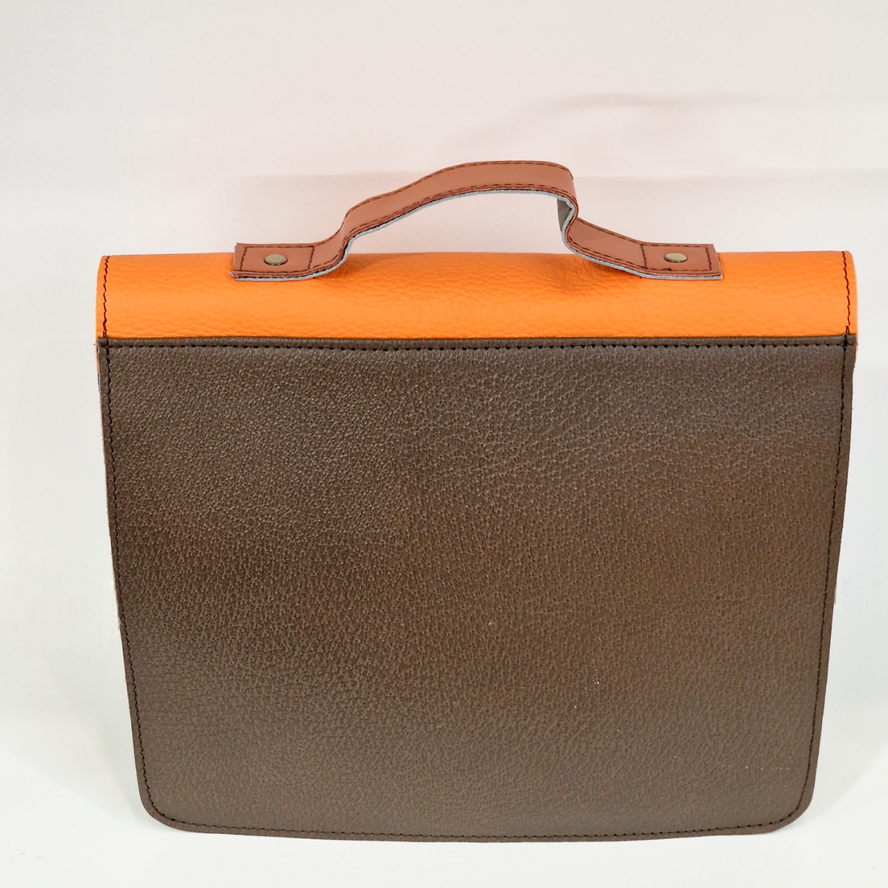 • Maleta de mão em couro castanho e laranja com alça