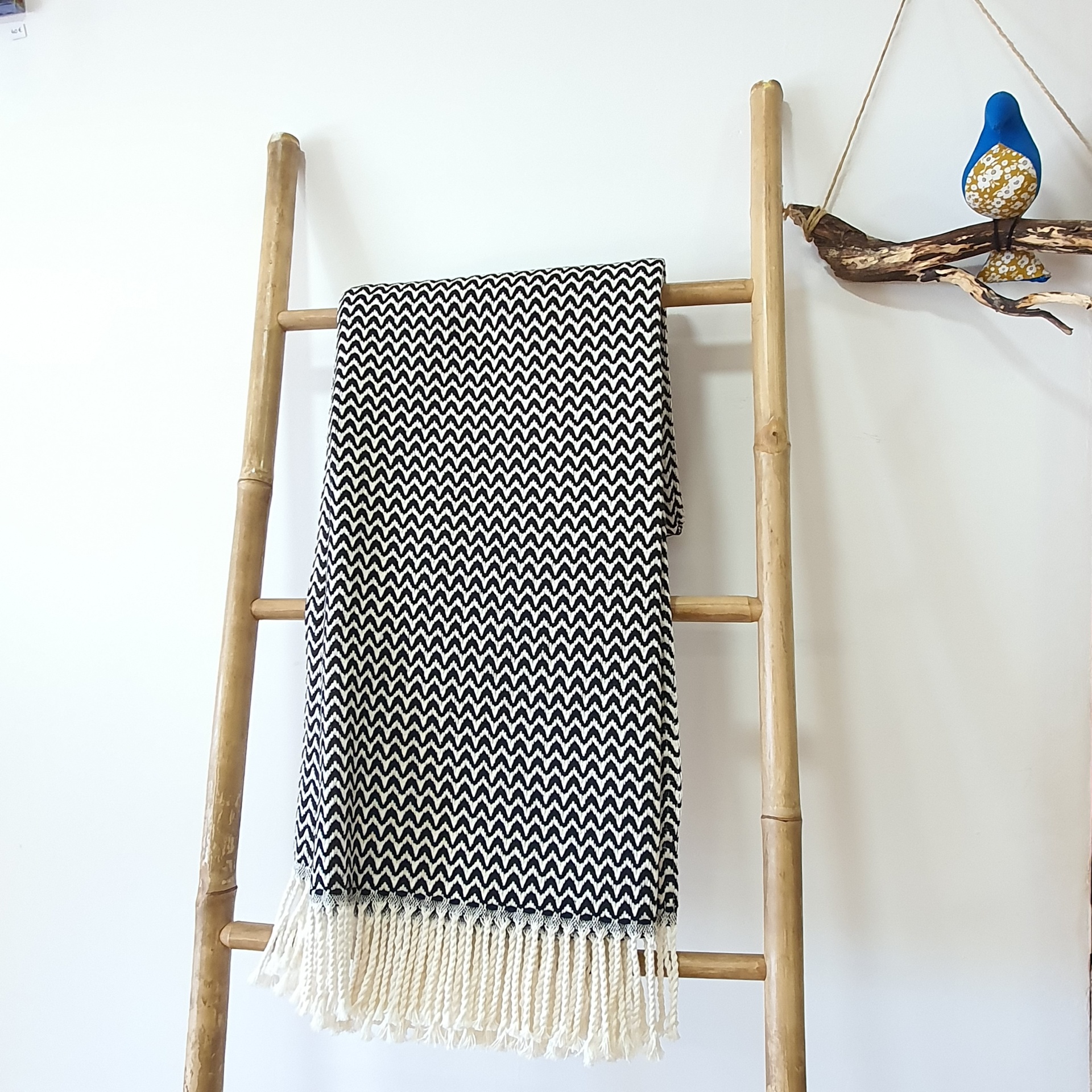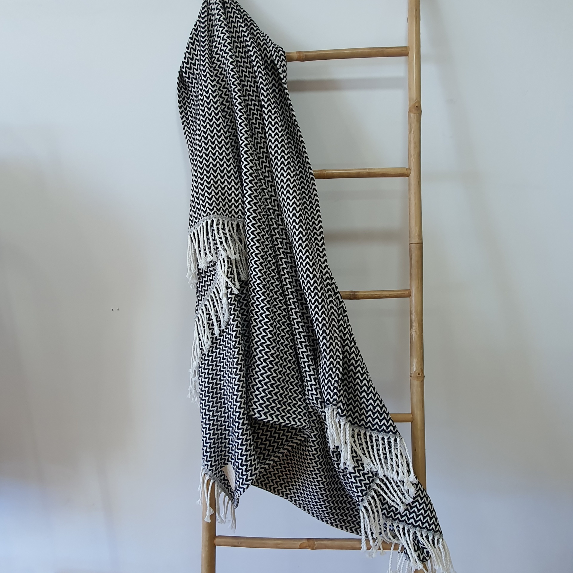 Manta de Ondas - Preto 39,50 € Desconto de %. IVA incluído. Partilhar Comprar Contactar Manta com padrão em ondas. Material: 100% algodão. Dimensoes: 130 x 190 cm, (com a franja). Cores: branco e Preto. Fabricado em Portugal. As cores dos produtos poderão sofrer ligeiras alterações devido à reprodução fotográfica. Tags artesanaldecoraçãotecidomanta de algodaomantatextilpretocouvertureblanket
