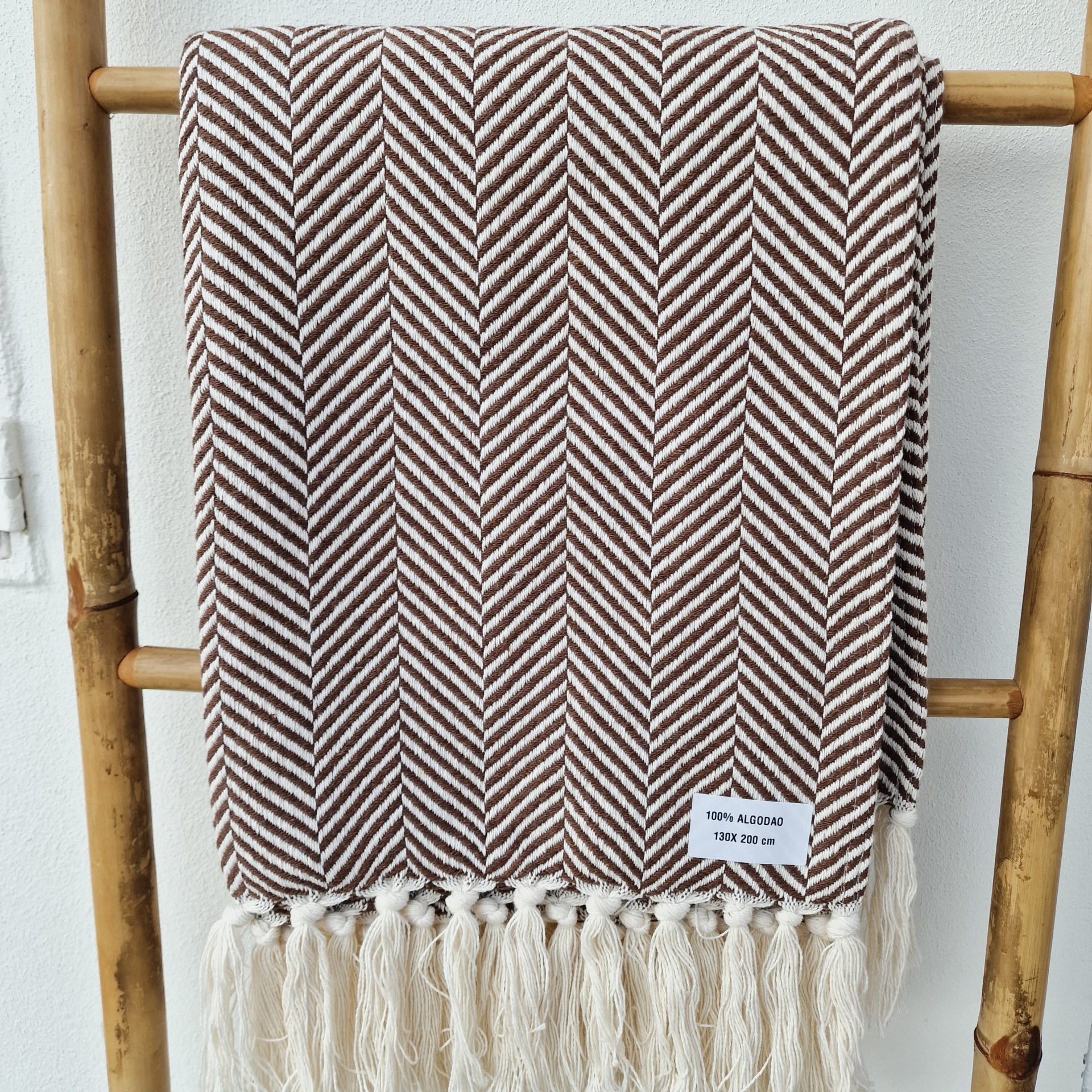 Manta Espinha - Castanho Escuro 39,50 € Desconto de %. IVA incluído. Partilhar Comprar Contactar Manta com padrão em espinha. Material: 100% algodão. Dimensoes: 130 x 200 cm, (com a franja). Cores: branco e castanho Fabricado em Portugal. As cores dos produtos poderão sofrer ligeiras alterações devido à reprodução fotográfica. Tags artesanaldecoraçãotecidomanta de algodaomantatextilcinzacouvertureblanket