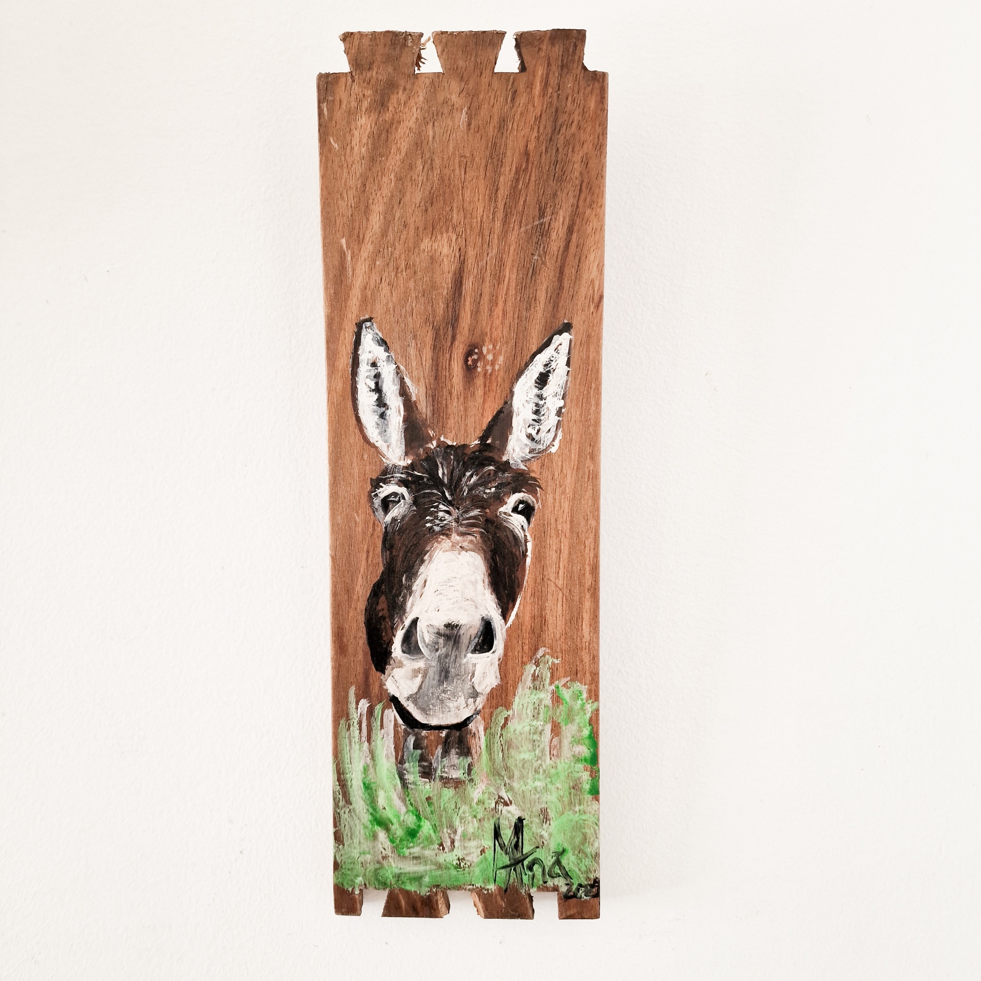 Pintura 39,00 € Desconto de %. IVA incluído. Partilhar Comprar Contactar Burro pintado à mão em madeiras reutilizadas. Dimensões: 28 x 9cm As cores dos produtos poderão sofrer ligeiras alterações devido à reprodução fotográfica. Tags pinturaartepintura em madeiraburro