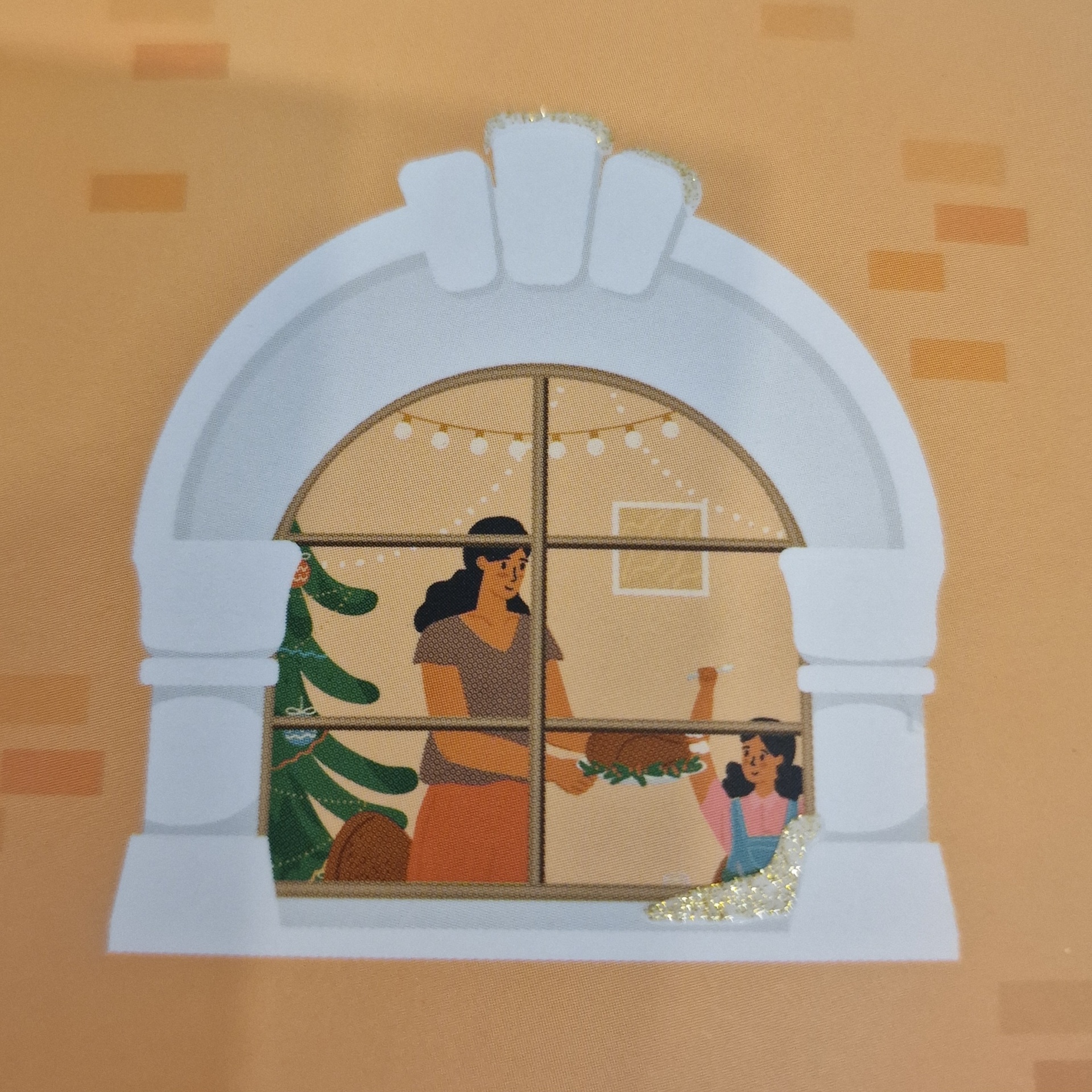 • Embalagem com ilustração de janela branca e pessoas dentro