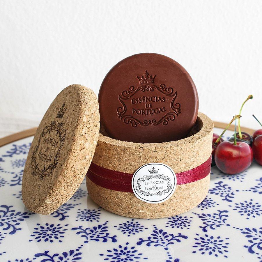 2 Sabonetes de 50g com aroma a ginja + Caixa "Guarda-Jóias" em cortiça.