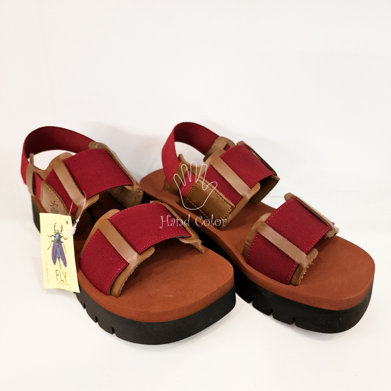 Sandália Fly London - SORU CAMEL/DARK RED/BRICK