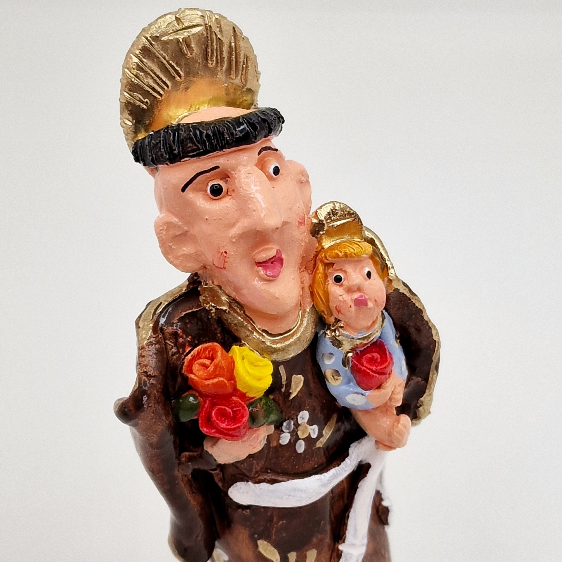 Santo António - Figurado de Barcelos 24,00 € Desconto de %. IVA incluído. Partilhar Comprar Contactar Santo António - Cerâmica Figurativa de Barcelos Esta é uma peça única e certificada, modelada e pintada à mão, por João Ferreira. Altura máxima: 15 cm As cores dos produtos poderão sofrer ligeiras alterações devido à reprodução fotográfica. Tags barcelosceramicasantosanto antóniofigurado de barcelos Características