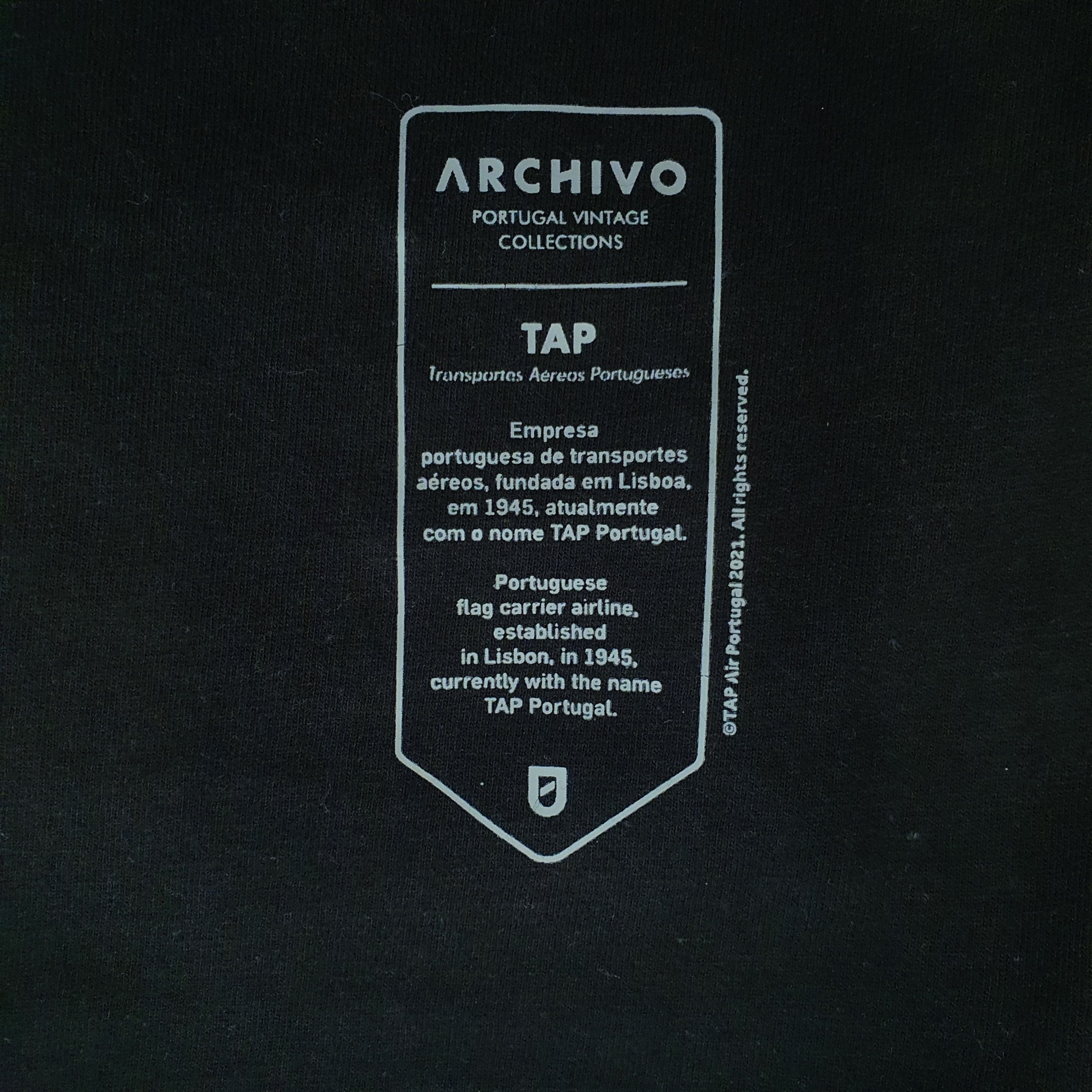 T-shirt - Fly Back to K7 28,00 € Desconto de %. IVA incluído. Partilhar Tamanho S M L XL XXL Comprar Contactar TAP (transportes aéreos Portugueses) empresa portuguesa de trasporte aéreos, fundada em Lisboa, em 1945, atualmente com o nome TAP Portugual. Caracteristicas: - Modelo unisexo - Estampagem em serigrafia - 100%algodão - Edição Limitada - Made in Portugal - Designed by Archivo© As cores dos produtos poderão sofrer ligeiras alterações devido à reprodução fotográfica. Marca Archivo Tags t-shirtedição limitadamarca portuguesatransporte aereoTAPpreto
