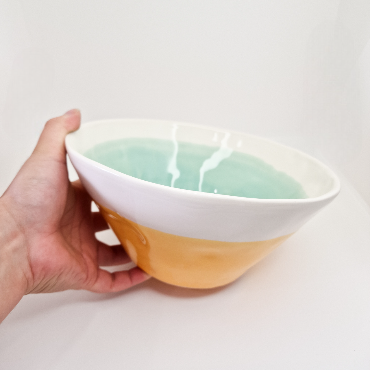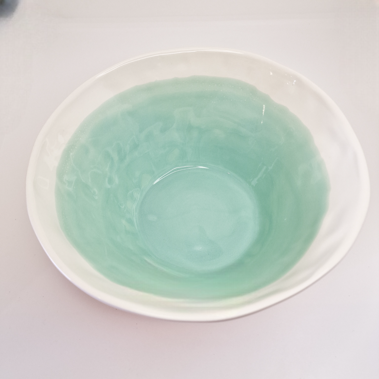 Tigela Grande 24,50 € Desconto de %. IVA incluído. Partilhar Comprar Contactar Tigelas feitas em cerâmica com vidrado com cor e com efeito de com paredes onduladas. Sendo esta uma peça artesanal e única, poderá receber uma peça com ligeiras diferenças. Diâmetro: 22cmDiâmetro do fundo: 11cmAltura: 12cm As cores dos produtos poderão sofrer ligeiras alterações devido à reprodução fotográfica. Tags ceramicaartesanaldecoraçãoutilitáriotigelaSaladierBowl